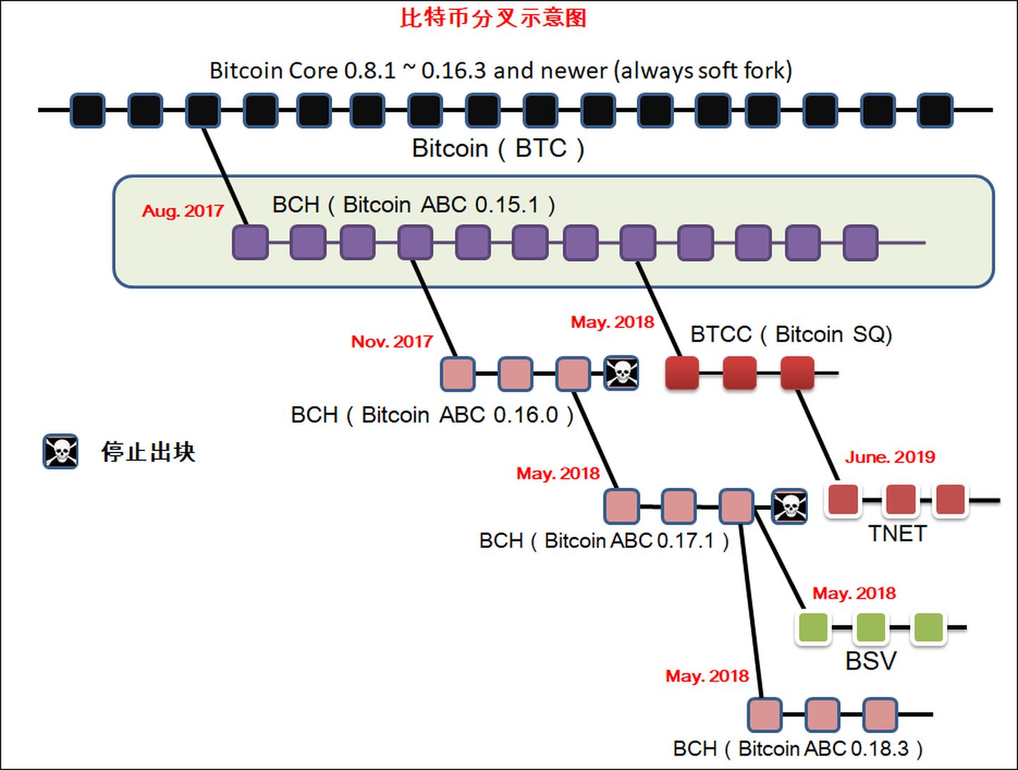 由于版本切换,比特币区块链被分叉至两条独立的区块链。在分叉前拥有比特币的所有人都有权获得相同数量的“比特币现金”代币,类似于股票中的股息派发。