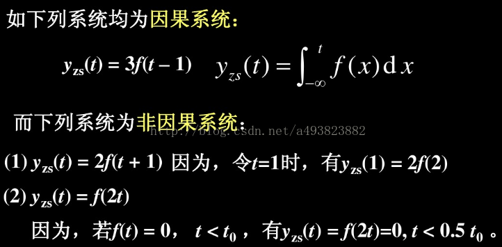 即对于因果系统(以连续系统为例),当t<t0,f(t)=0时,有t<t0,yzs(t)=0。