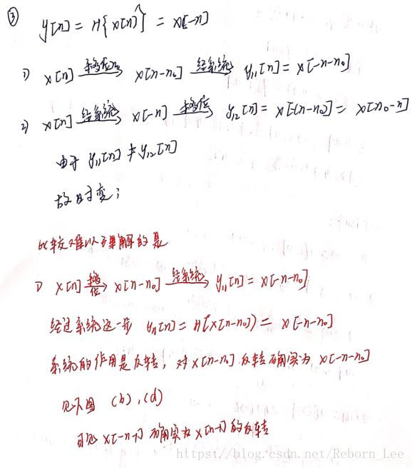 即y[n]=x[2n-4]=x[2(n-2]=y[n-2]≠y[n-4],故其为时变系统