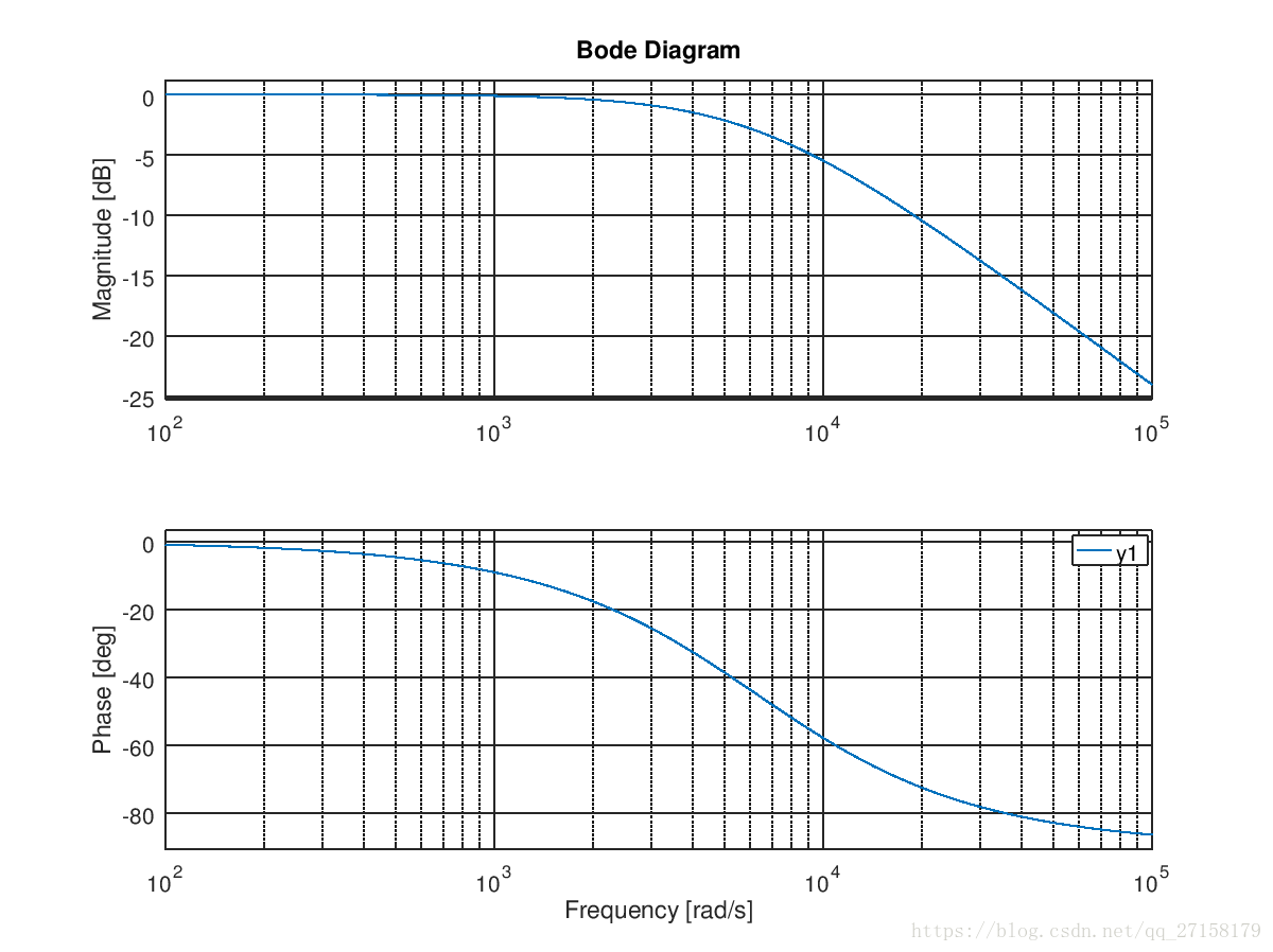 以上波特图可见,在截止频率处(,代入f=1k,可得截至角频率是6283 rad/s),信号会衰减到原来的0.707。这电路对频率大于截止频率的高频信号,具有比较强的衰减作用,同时对该信号有比较大的相位移动。