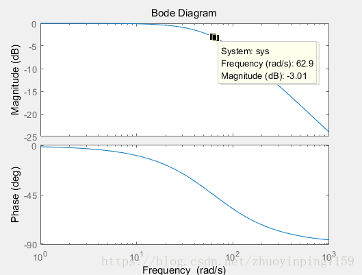,其中T为惯性时间常数,即2*pi*f,f为转折频率;K为惯性增益,这里令K为1