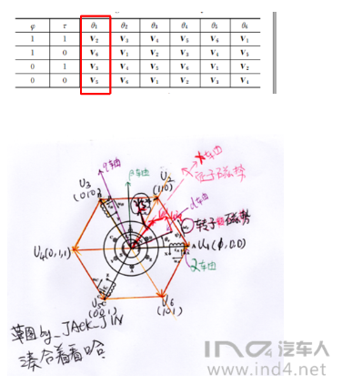 1.如果电机欠磁欠力(1 1),给定U2,则给定电压与电机当前位置的电压夹角介于[0° 60°]之间,实现增磁增力;