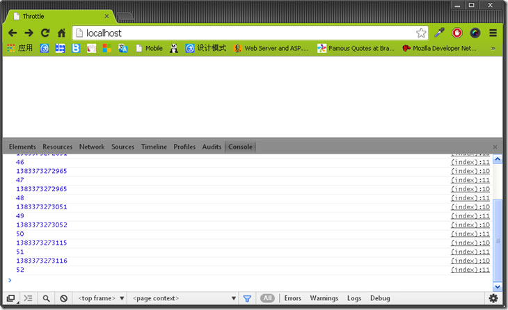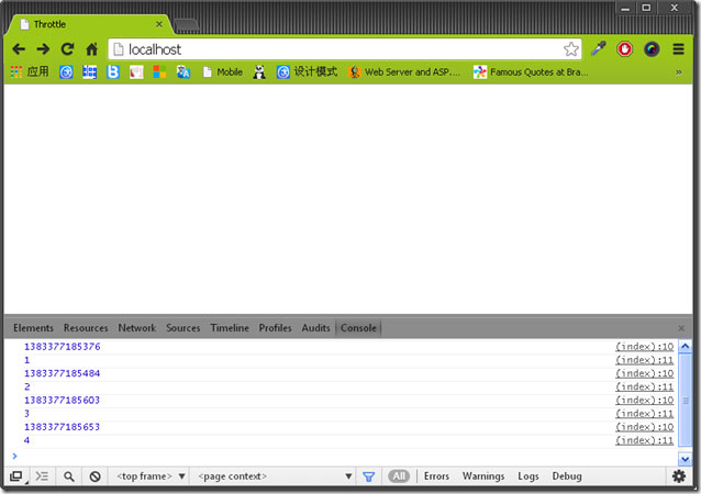 有一天做了个类似的东西,就像百度首页输入自动提示一样的东西,我在text上绑定keyup事件,每次键盘弹起的时候自动提示,但是又不想提示那么频繁,于是我用了上面方法,但是悲剧了,只有停止输入等500毫秒才会提示,在输入过程中根本就没有提示。看了一下代码,可不是嘛,只要是用户会盲打,在500毫秒内按一下键盘,提示函数就会不断被延迟,这样只有停下来的时候才会提示,这就没意义了。