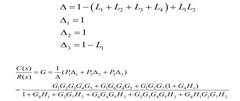 :在中,将与第条前向通路相接触的回路去掉后所余下的部分的,称为余子式。