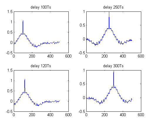 %%%%%%%%%%分别对内插后数据序列s2,延迟100Ts数据序列s3,延迟250Ts数据序列s4,
