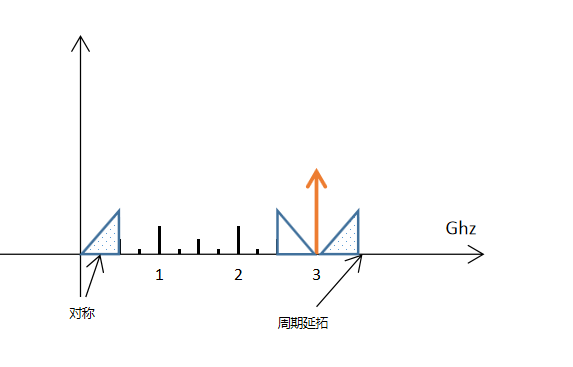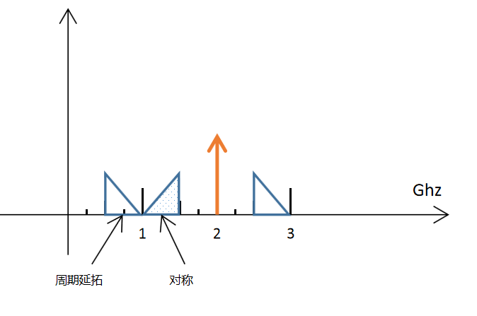上面我们说到频谱延拓,就我理解而言,无论是镜像频谱还是频谱的对称性,都是频谱延拓延伸出来的性质。我们通过下图来分析一下镜像频谱产生的原因。
