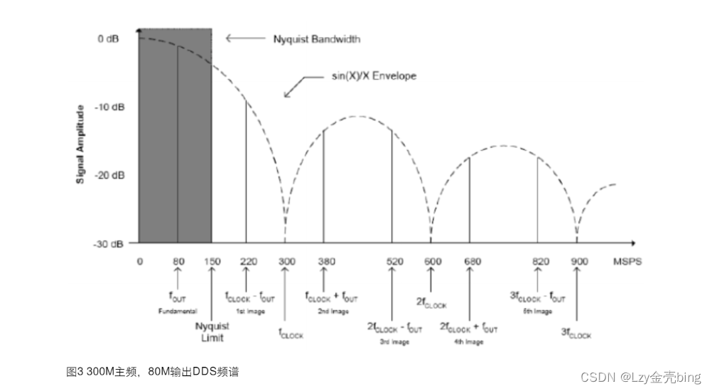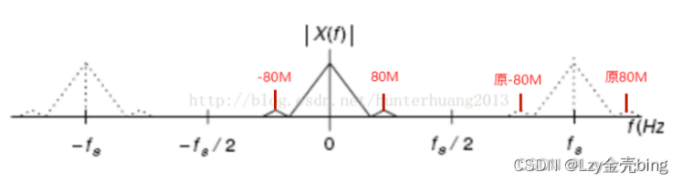 理论上由于信号双边谱特性,有80M信号就有镜像的-80M信号,fs=300M,根据频谱拓延,向右平移一个周期,就得到如图标注的样子,在fs内,有一个80M的频谱和原-80M的频谱,-80M的频谱横坐标就是220M。个人理解也是能解释为什么会有镜像频谱。