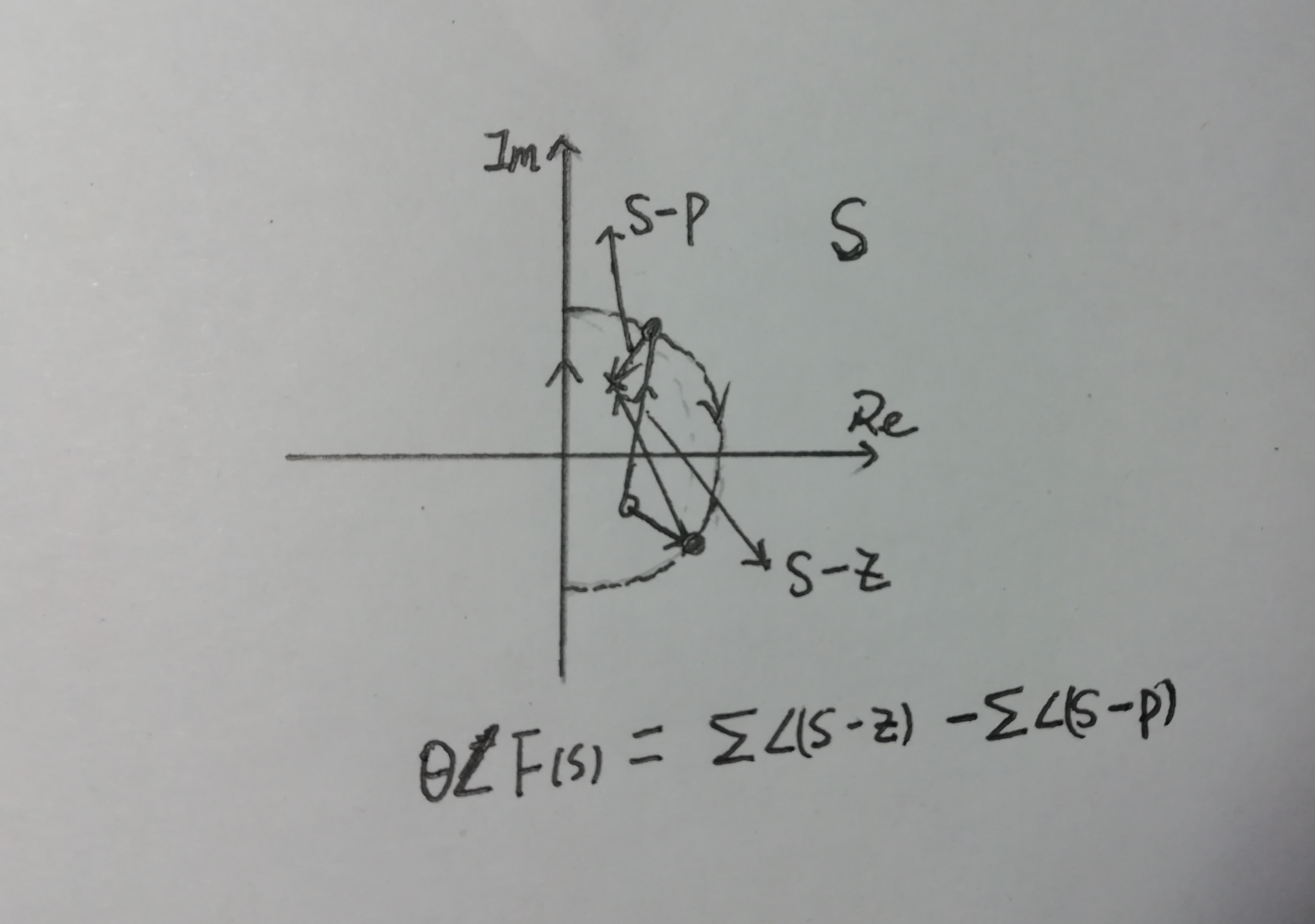F(s)在圆内有一个零点,那么F(s)将会绕着原点逆时针一圈,如果