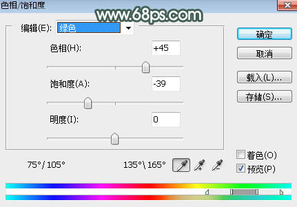 1、打开原图素材大图,创建色相/饱和度调整图层,对黄色,绿色进行调整,参数及效果如下图。这一步把背景主色转为中性绿色。