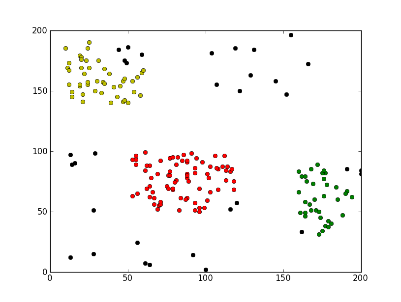 noisePointIdx = [pointIdx for pointIdx in range(len(points)) if pointIdx not in corePointIdx and pointIdx not in borderPointIdx]