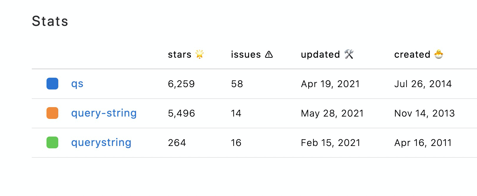 最后,再来看一下qs,qs是具有一些附加安全性的查询字符串解析和字符串化库