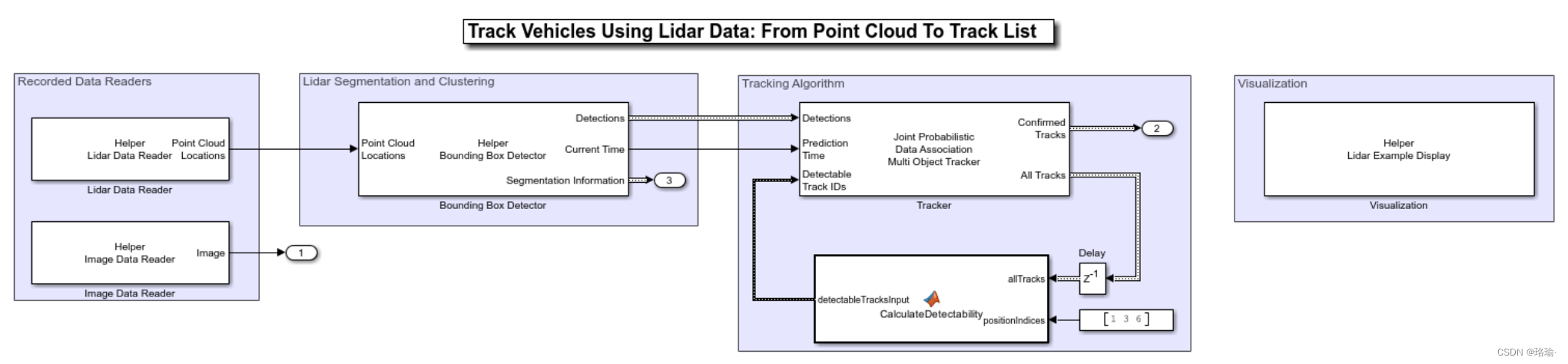 以上就是从容电源最近收集整理的关于基于Simulink使用激光雷达数据跟踪车辆仿真(附源码)一、设置二、模型概述三、检测和跟踪总线对象 四、结果五、总结六、程序的全部内容,更多相关基于Simulink使用激光雷达数据跟踪车辆仿真(附源码)一、设置二、模型概述三、检测和跟踪总线对象 四、结果五、总结六、程序内容请搜索靠谱客的其他文章。