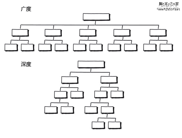 其实“深广度”本身并不是一个单一的概念。在网站的信息架构中,有一种组织结构叫做树形结构:网站首页视为链接层级中第一级,与其有从属关系的页面视为链接层级中的第二级,一般称其为二级页面。通过二级页面又可以继续得到第三级页面,依此类推可以得到一个完整的树形链接结构。这样一个完整的链接结构,我们称它为树形结构。