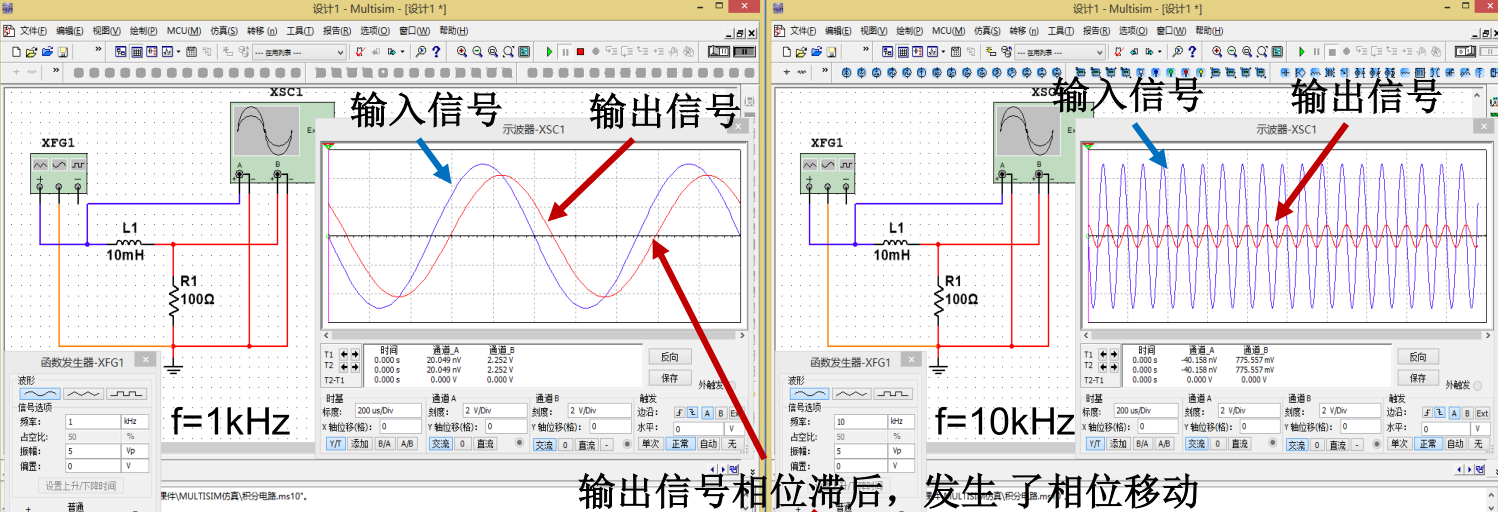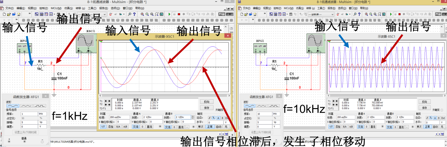 下边为其具体仿真,由具体仿真可知,高频信号的输出幅值减小,低频信号输出的幅值基本未减小。