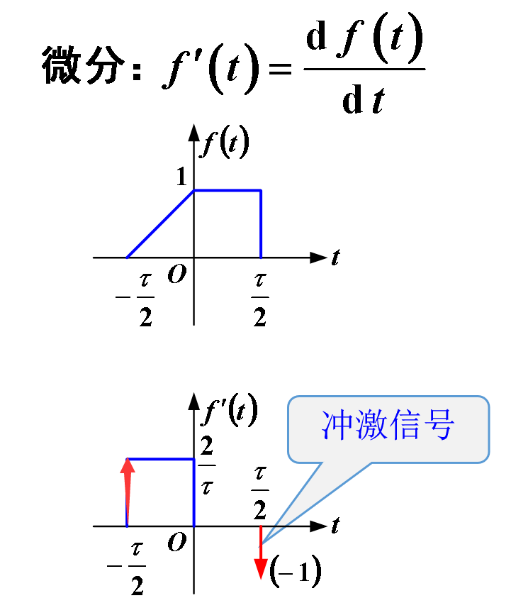更正:斜边信号求导为阶跃信号,冲激信号求导为冲激偶信号;