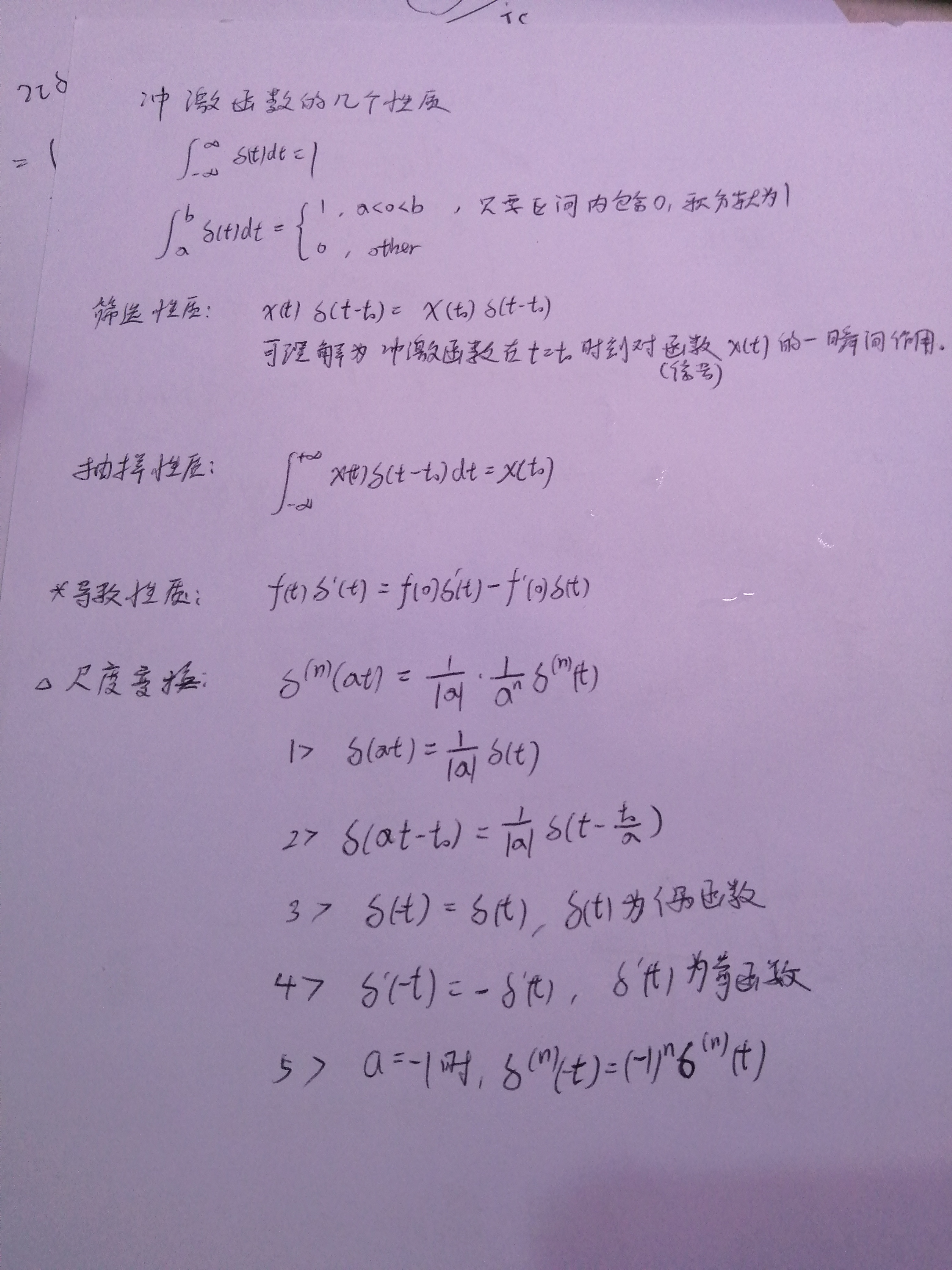 冲激函数的一些重要性质: