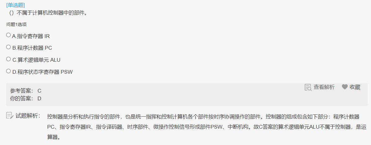 程序计数器是控制器中的一个重要部件,它的功能是指示程序的执行顺序。指出下一条指令在主存储器中的地址,程序员可访问。