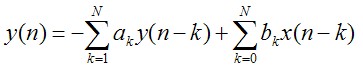 这个式子是N次差分方程的表达式。我们明显可以看出,计算输出y(n)的时候,需要以前的输出值与输入值。换言之,这个可能表达式还有反馈环节。当