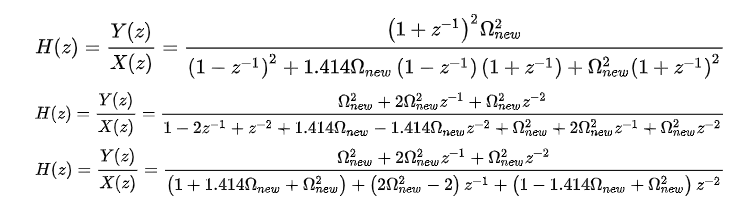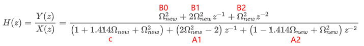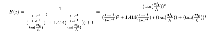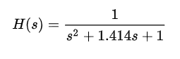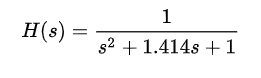 还是以我们的归一化二阶巴特沃斯低通滤波器公式