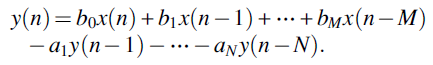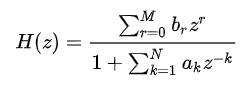IIR实现的最终效果就是我们刚才设计的过程对应的通用转移函数结构如下
