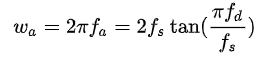 如果我期望的数字滤波器截止频率为fd,对应的模拟滤波器截止角频率为: