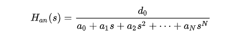 使用这种函数需要进行一些零极点配置,才能得到我们想要的传递函数,好在模拟滤波器设计非常成熟,有各种表格,我们查表就能直接得到对应的滤波器传递函数。