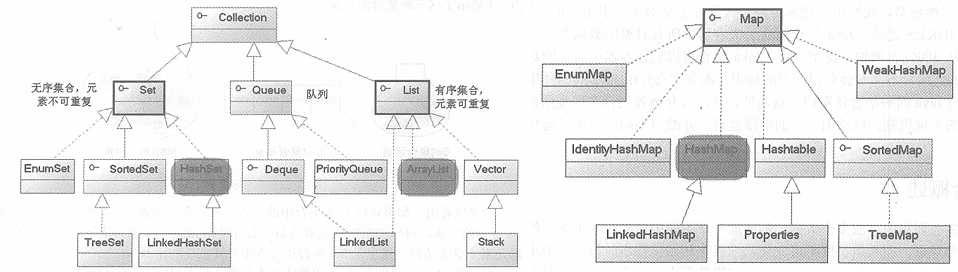 HashMap实现了Map接口,HashSet实现了Set接口