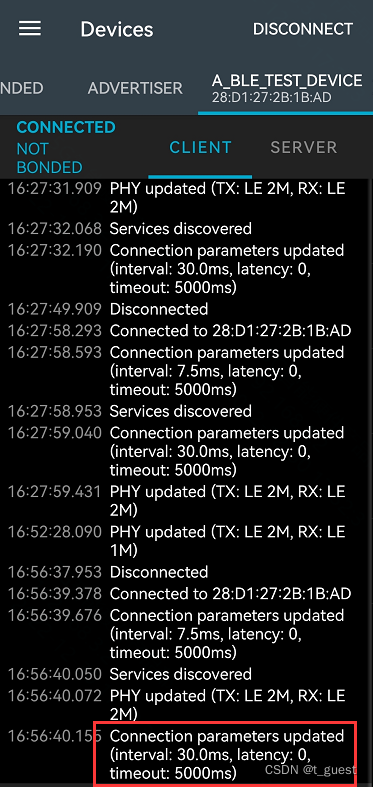 Interval:连接间隔30ms