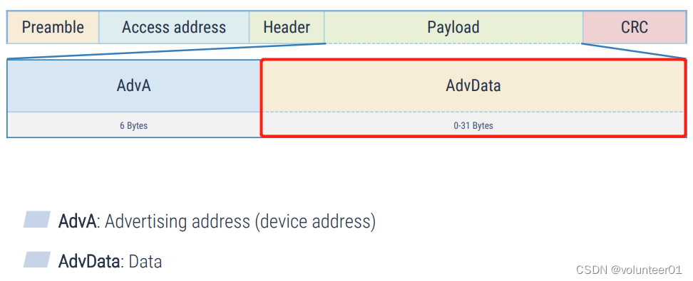 上一篇主要介绍一个BLE广播报文的结构以及报文头部各个部分的含义。在承接上一篇的基础上,本文将重点介绍广播报文PDU净荷的数据部分(AdvData)。