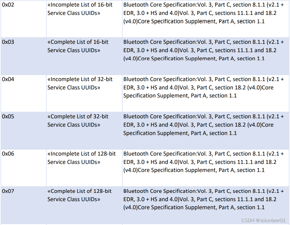 - 0x02 ~ 0x07 - Service UUID: 设备的GATT服务