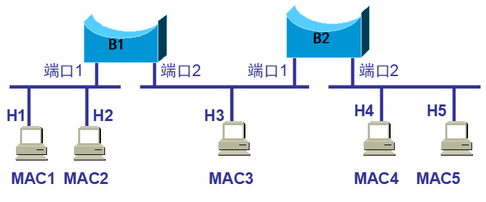 | 发送的帧 | 交换机B1的转发表 | 交换机B2的转发表 | 交换机B1的处理(转发?丢弃?登记?) | 交换机B2的处理(转发?丢弃?登记?) | ||