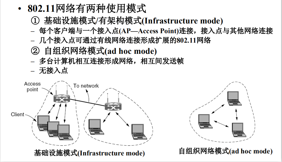 无线局域网主要采用基础设施模式
