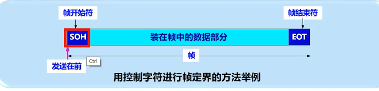 ②控制字符SOH放在该帧的最前面,表示帧的首部开始。另一个控制字符EOT 表示该帧的结束。