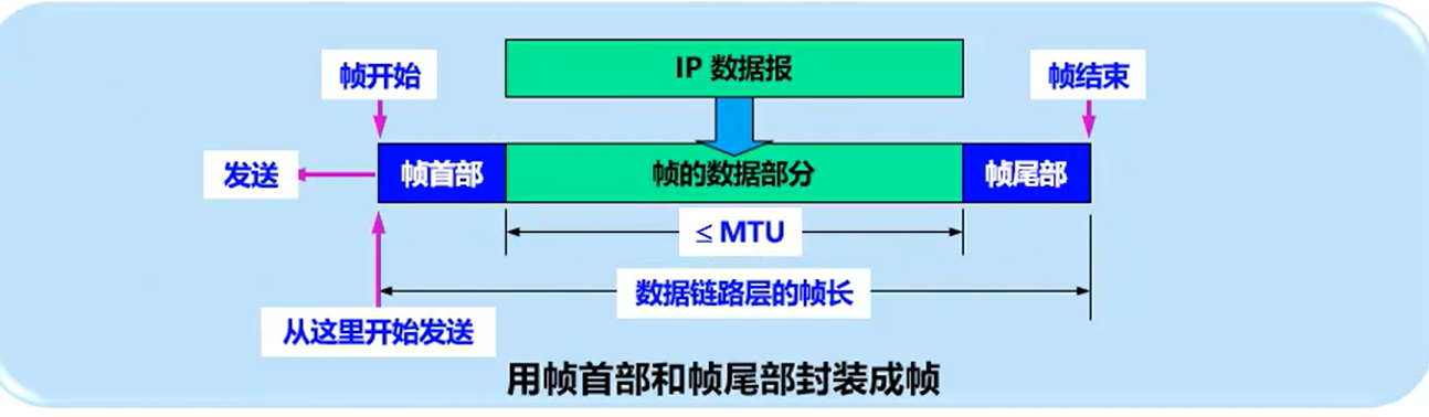 封装成帧(framing)就是在一-段数据的前后分别添加首部和尾部, 然后就构成了一个帧。帧首部和尾部的一个重要作用就是进行帧定界。即当数据发送中断时,接收端收到了只有帧开始符没有帧结束符的帧,就认为是一个不完整的帧,就会被丢弃。