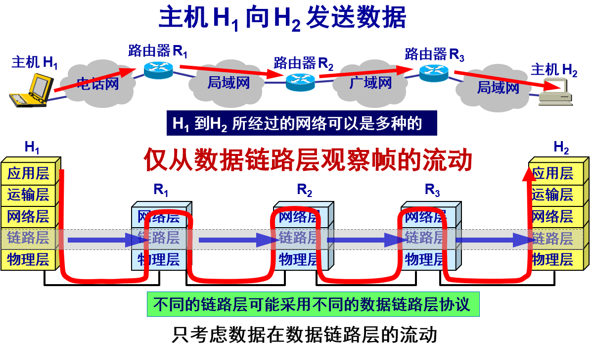 数据链路层协议有许多种,但有三个基本问题则是共同的。这三个基本问题是: