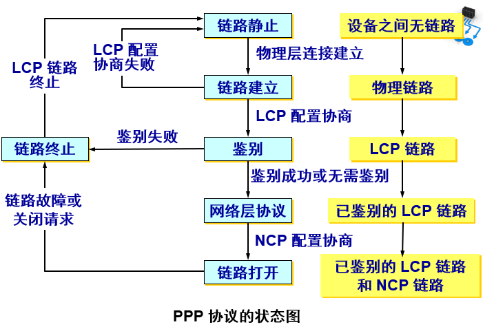 对于点对点的链路,目前使用得最广泛的数据链路层协议是点对点协议 PPP (Point-to-Point Protocol)。