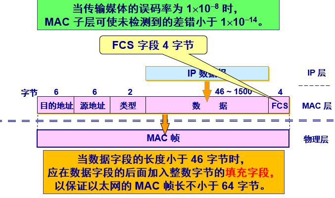 - 保留了 802.3 标准规定的以太网最小和最大帧长,便于升级。
