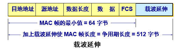 使最短帧长仍为 64 字节(这样可以保持兼容性),同时将争用时间增大为 512 字节。