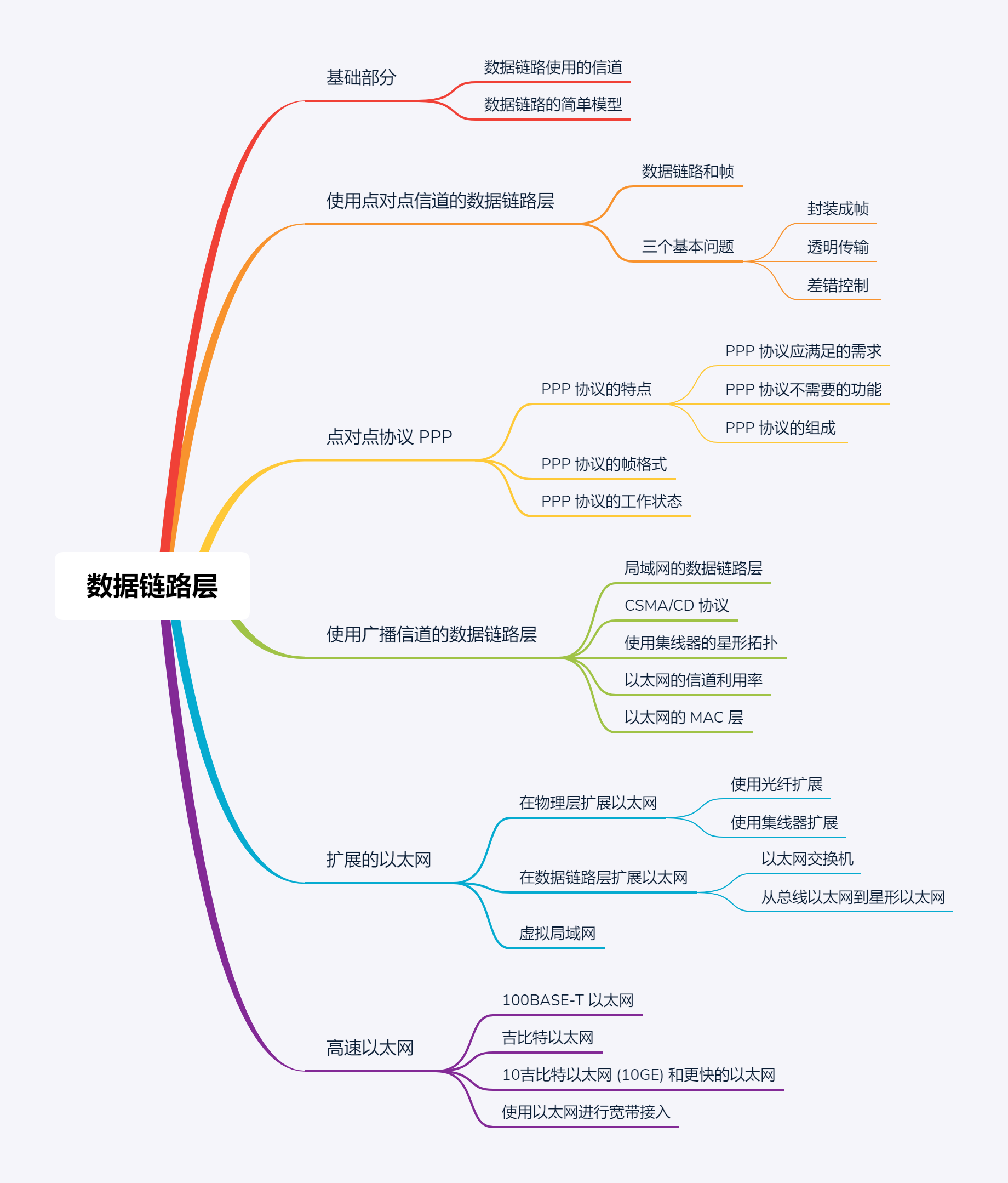 以上就是坚强黑米最近收集整理的关于【计算机网络】谢希仁笔记 数据链路层大纲一、基础二、使用点对点信道的数据链路层三,点对点协议 PPP四,使用广播信道的数据链路层五,扩展的以太网六,高速以太网的全部内容,更多相关【计算机网络】谢希仁笔记内容请搜索靠谱客的其他文章。