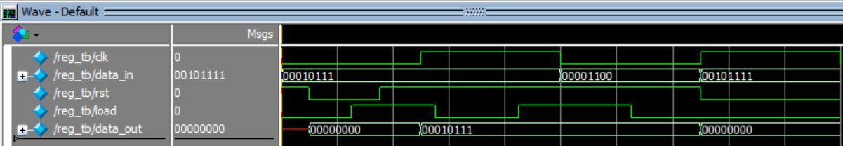 clk=0; rst=1; load=0; data_in=8'd23;