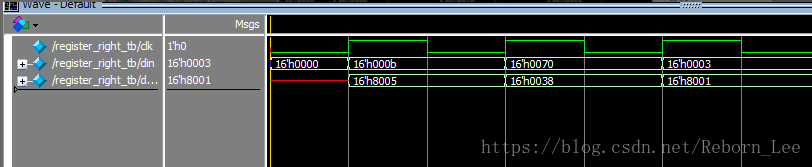 下面描述的是一个位宽为16位的右移位寄存器,实际具有环形移位的功能,是在右移位寄存器的基础上将最低位的输出端接到最高位的输入端构成的。其功能为当时钟上升沿到达时,输入信号的最低位移位到最高位,其余各位依次向右移动一位。