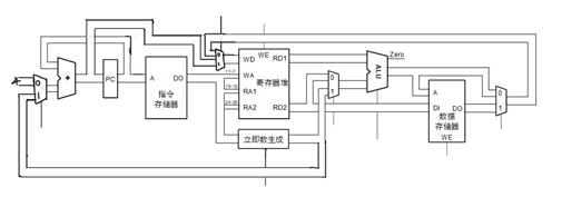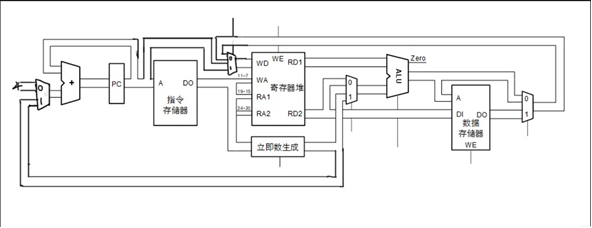 addi指令本质上是I型指令的一种,其数据通路主要是由:加法器、程序计数器PC、指令存储器、寄存器堆、运算器ALU组成。
