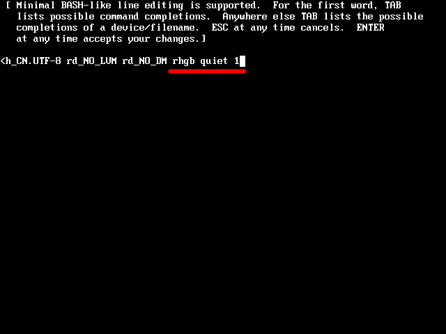 3. 上图中红色矩形类的内容,按“a”键可以修改内核参数,所以按a键,然后进入一下界面