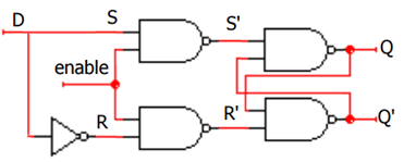 CLK=0时,D值传递至Q*;CLK=1时,Q*值传递至Q;即CLK为上边沿时,D值可以传递至Q