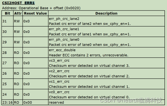 ERR2:0x10 ->bit 4 为1 对应寄存器CSI2HOST_ERR2 bit4 ->phy_errsoths_0