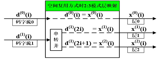 码字到层的映射只允许有1:2和1:4,即一码字流映射至两层或四层 。