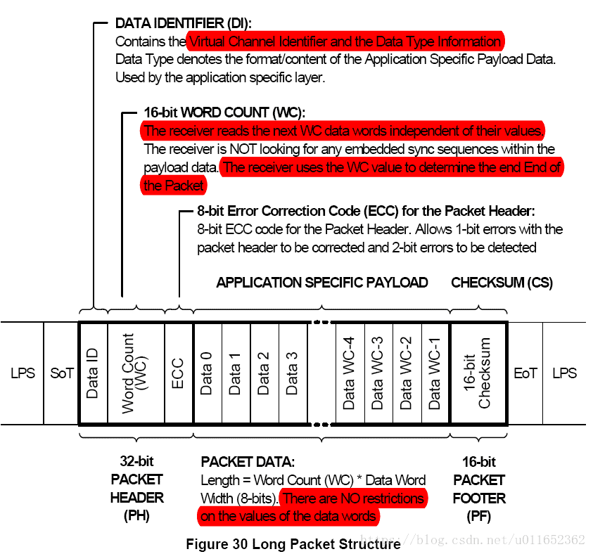 图5-2 MIPI CSI2的长包数据格式