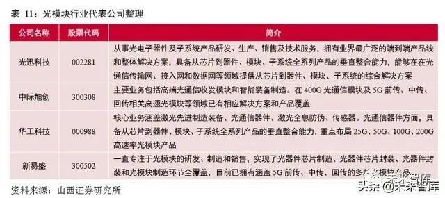 重点关注公司:中兴通讯(基站设备)、烽火通信(基站设备+光传输设备)、华工科技(光模块) 、中际旭创(光模块)、新易盛(光模块)、星网锐捷(交换设备)。