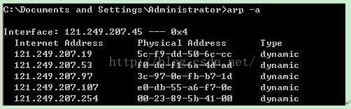 2.用arp 命令查看某一个特定IP 地址的ARP 缓存器: