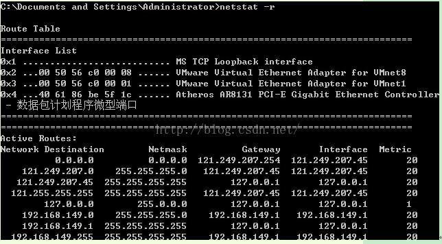 (3) netstat -r 显示核心路由信息,将接口列表呈现出来,活动路由的网络掩码,网关,接口,跳跃点。